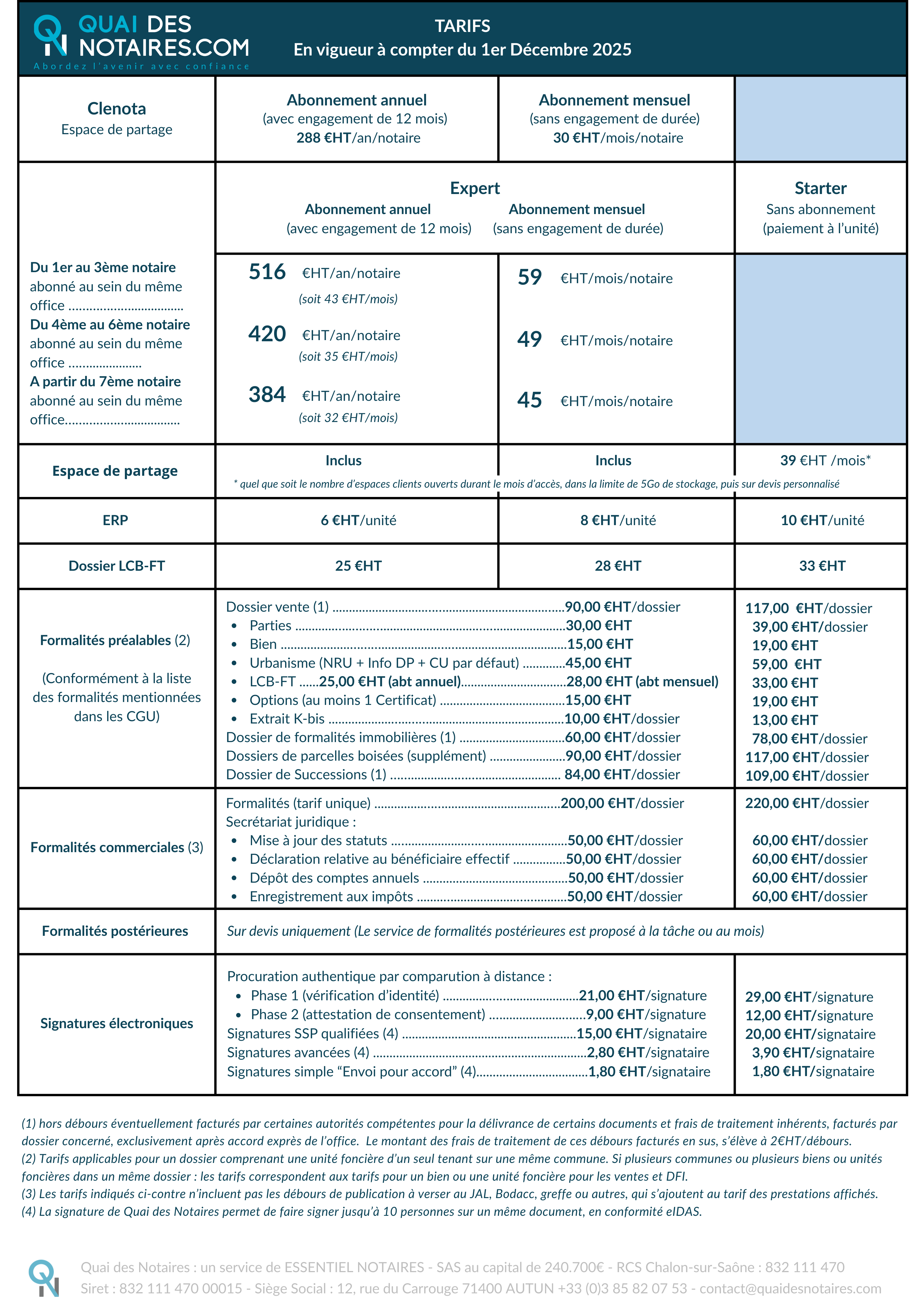 Chaque dossier de formalité, ERP, LCB-FT et signature est accompagné d’un état de frais permettant de répercuter le coût à votre client.